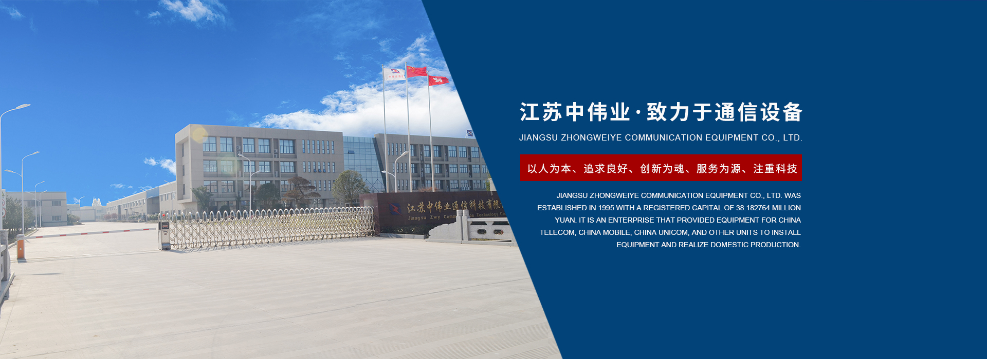 江蘇中偉業(yè)通訊設(shè)備有限公司創(chuàng)建于1995年,注冊(cè)資本為3818.2764萬(wàn)元,是我國(guó)較早為華為、中國(guó)電信、中國(guó)移動(dòng)、中國(guó)聯(lián)通等單位供應(yīng)機(jī)站安裝材料的公司,并與其建立了長(zhǎng)久穩(wěn)定的合作關(guān)系。